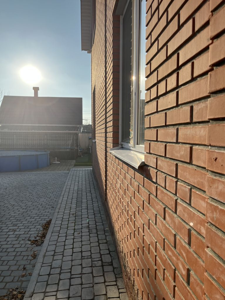 - Дом - кирпичный, лицевая сторона обшита профлистом, окна ПВХ.