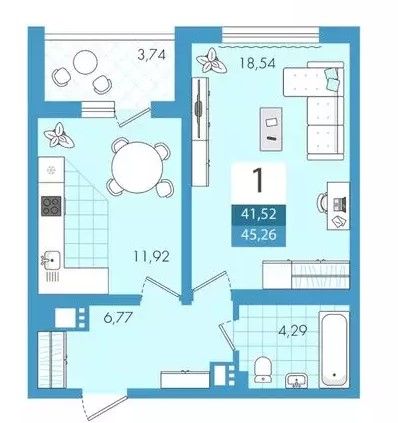 | Количество комнат | 1 – комнатная |